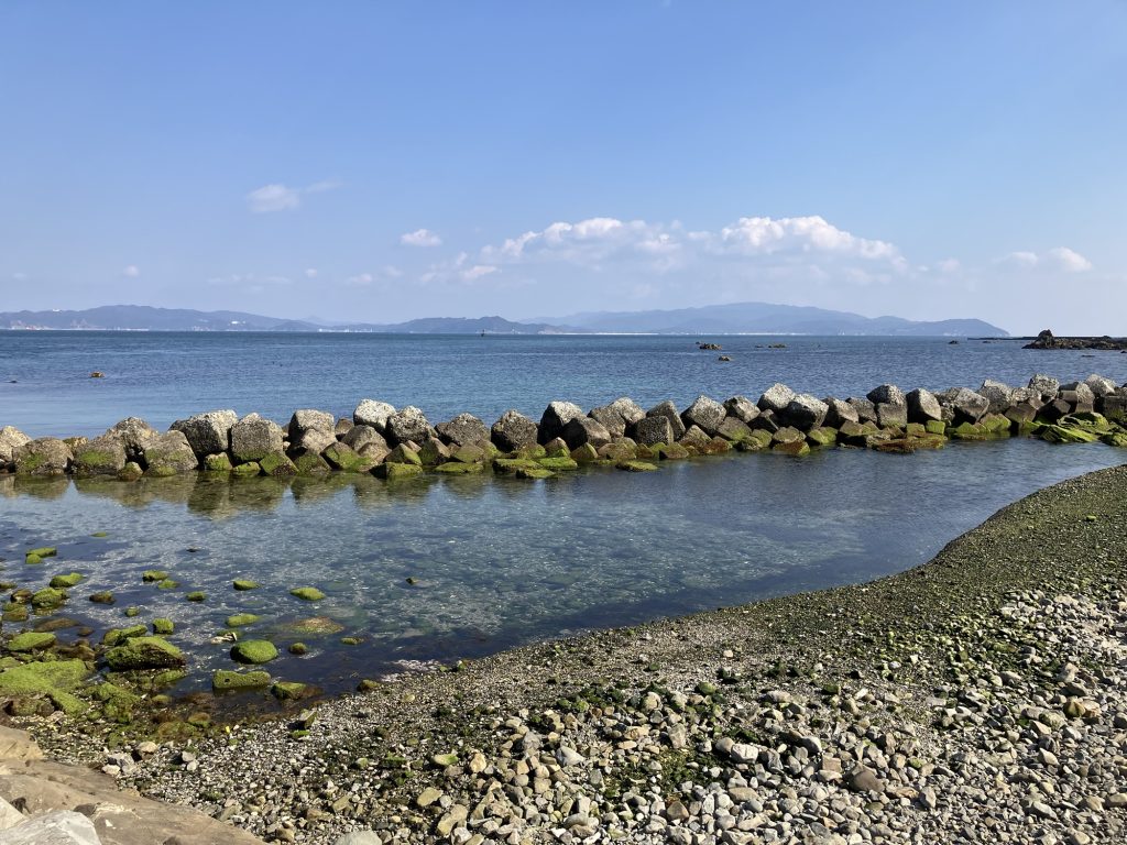 続いて東波止外側の付け根付近。浅いので底のゴロタ石が見えます。