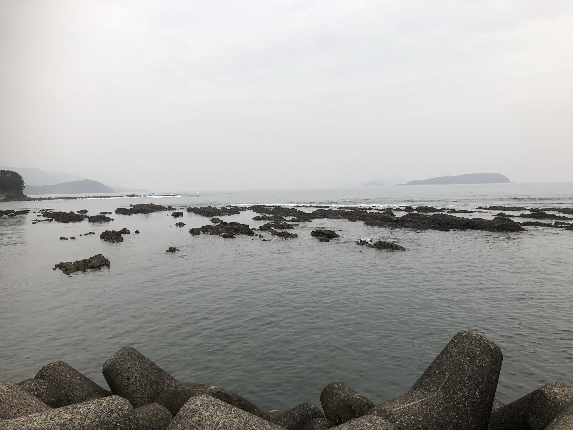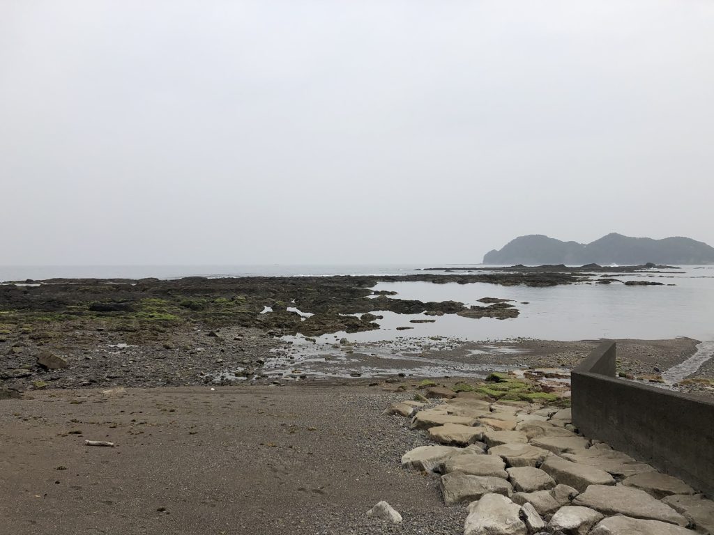 大潮の干潮時には地磯を歩いて沖まで行けます。これはこれで楽しい遊びですけどね。